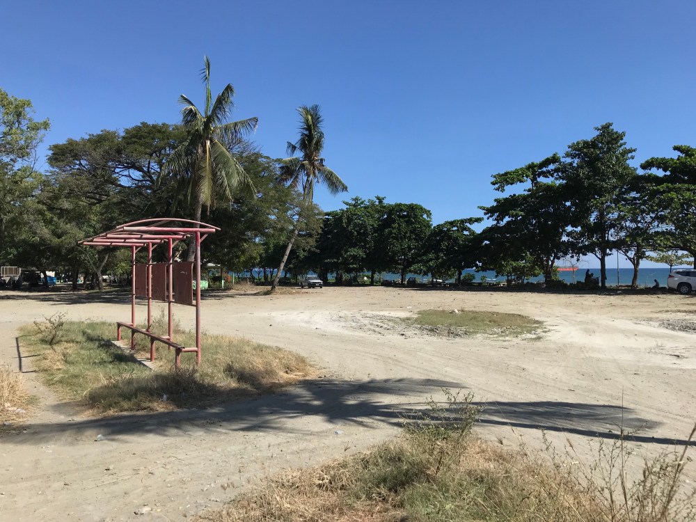 Op dag 1 nemen we dus geheel volgens plan de bus van Dili naar Baucau. Onze reisgids (Lonely Planet uit 2011; de meest recente versie die we hebben kunnen vinden) vermeldt een busstation niet ver van ons hotel. Omdat in de reisgids staat dat zo’n busstation vaak niet meer is dan een verlaten bushokje, kijken we niet raar op als we aankomen bij een leeg veldje met daarop… een bijna vergaan bushokje. We wachten. En wachten. En wachten. Tot we erachter komen dat het busstation verplaatst is. Poging 2.