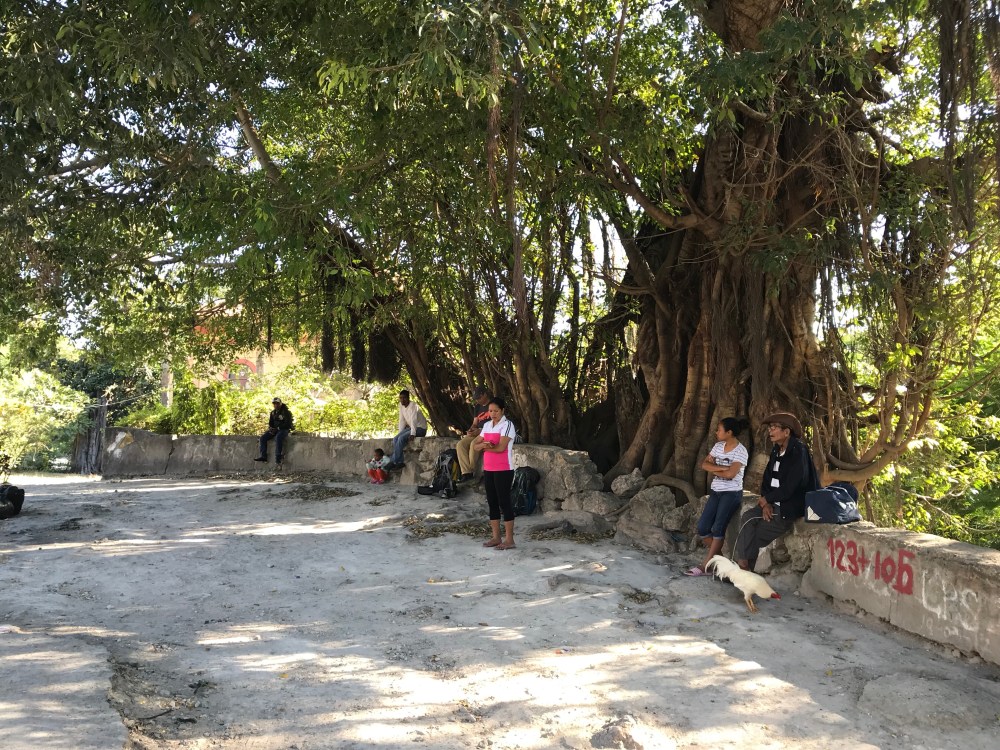 Op een paar bussen naar Dili na, lijkt er weinig te gebeuren. Maar wachten is inmiddels onze specialiteit, dus geduldig nemen we plaats op een stoepje en laten we ons bekijken door nieuwsgierige locals. Na een tijdje komen er een paar jongens naar ons toe met de vraag waar we heen gaan. Als we zeggen dat we naar Lospalos willen, volgt er een hoop commotie en blijkt (je raadt het al) dat de bus naar Lospalos niet vanaf het busstation vertrekt. Nee, de bus naar Lospalos stopt bij een grote boom in de oude stad, op een steenworp afstand van het Blue Ribbon Guest House. Zo gezegd, zo gedaan en enkele ogenblikken later zitten we weer in de microlet, terug naar de old town.